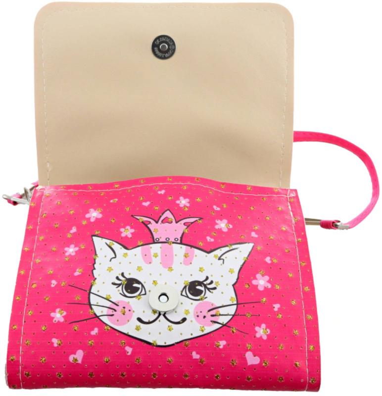 Kabelka dětská třpytivá přes rameno růžová kočička 15x12cm
