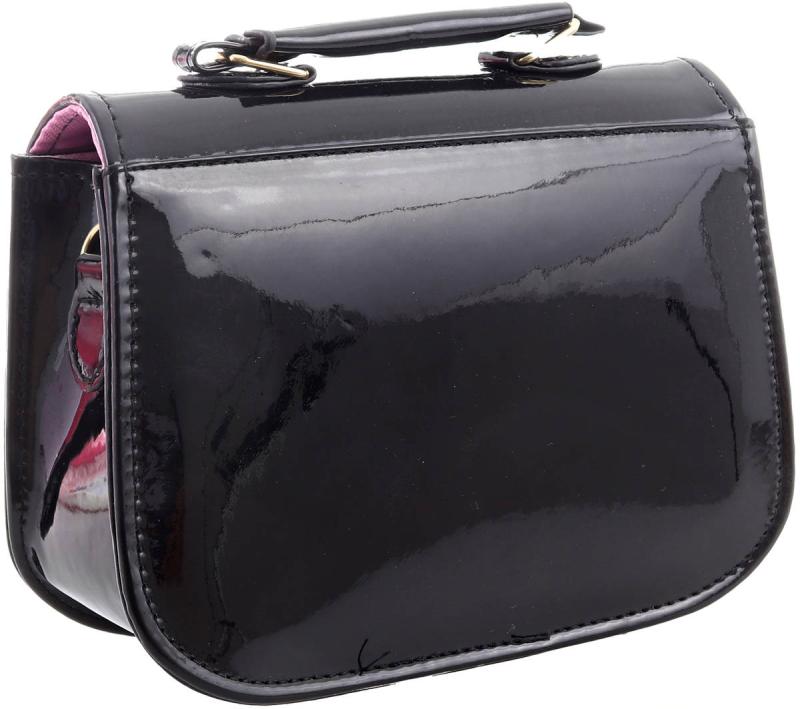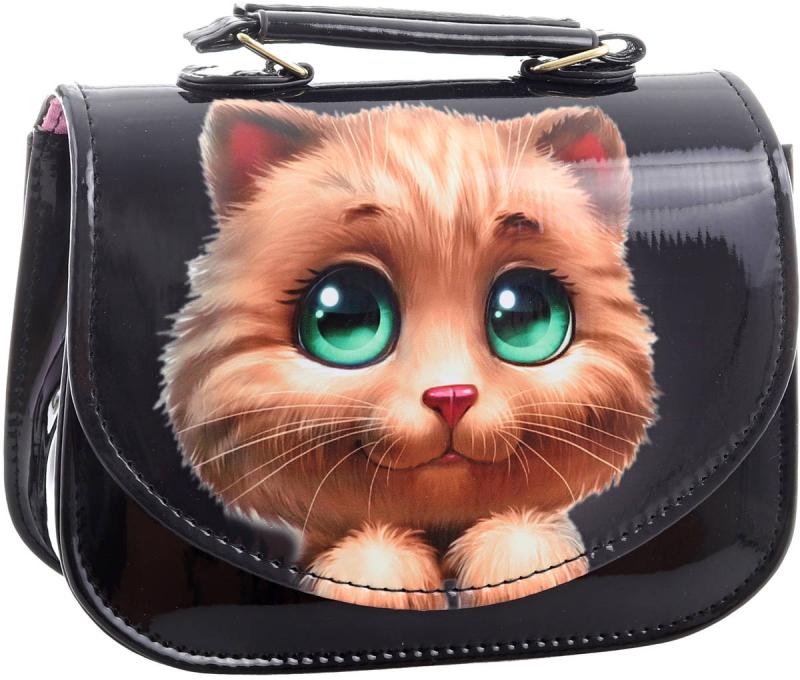 Kabelka kočička černá lakovaná 18x14cm s popruhem přes rameno