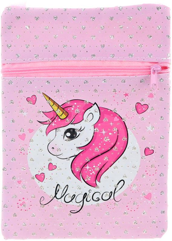 Kabelka přes rameno jednorožec 13x19cm třpytivá taštička na zip