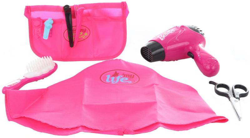 Kadeřnická plastová souprava pro zkrášlování vlasů, pro všechny malé parádnice a kadeřnice. Kadeřnické potřeby obsažené v této sadě vylepší hry pro dívky na kadeřnice a kosmetičky. Téměř každá malá holčička touží být kadeřnicí. Pořiďte jí tedy tento kadeřnický set s fénem, hřebenem, sponkami a dalšími doplňky.