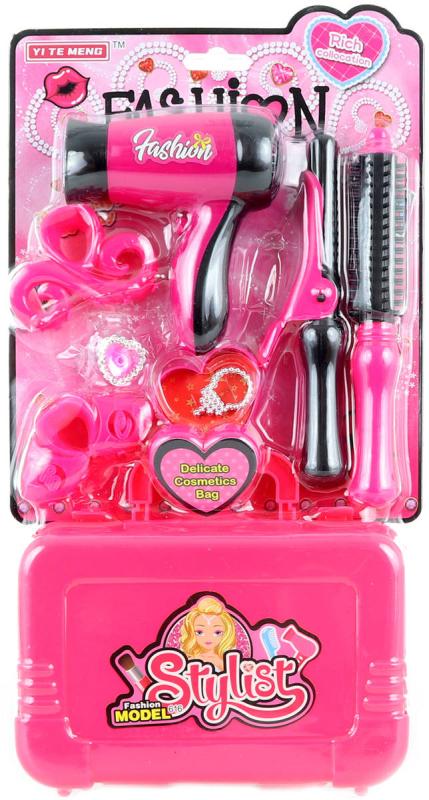 Obsah balení: kufřík, fén, kulma, natáčky, zrcátko, hřeben, náušnice, skřipce, krabička na šperky atd.