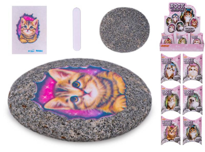 Zdobení kamínků, výroba dekorace. Ozdob si přiložený přírodní kámen oblázek pomocí samolepky s motivem zvířátek (Kočky). 6 různých motivů.