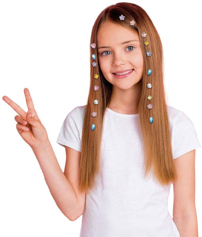 Tato kreativní hračka je skvělým dárkem pro všechny malé parádnice, které si rády upravují vlasy a chtějí jim dodat trochu třpytivého kouzla. Zkrášlovací sada Teddies obsahuje 24 barevných diamantů, 24 spon a praktický aplikátor, díky kterému je připevnění ozdob do vlasů snadné a bezpečné. Děti si tak mohou samy vytvořit originální účesy a rozvíjet svou fantazii i jemnou motoriku. Sada Třpytivé diamanty do vlasůje zábavná aktivita pro malé milovnice módy a vlasového stylingu od 5 let.