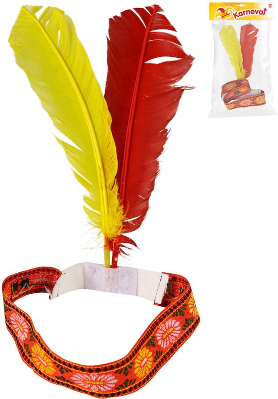 KARNEVAL Čelenka indiánská ribana s výšivkou barevná péra