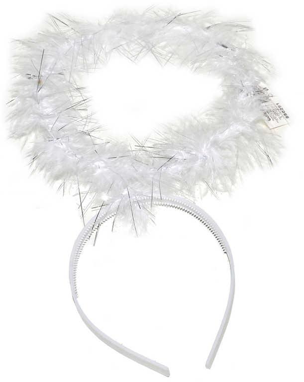 S něžnou svatozáří vás budou všichni považovat za anděla, i kdyby vám z očí sršely blesky a zpod sukýnky vykukoval čertovský ocas. Andělská svatozář je vyrobena z jemného prachového peří, připevněna k bílé