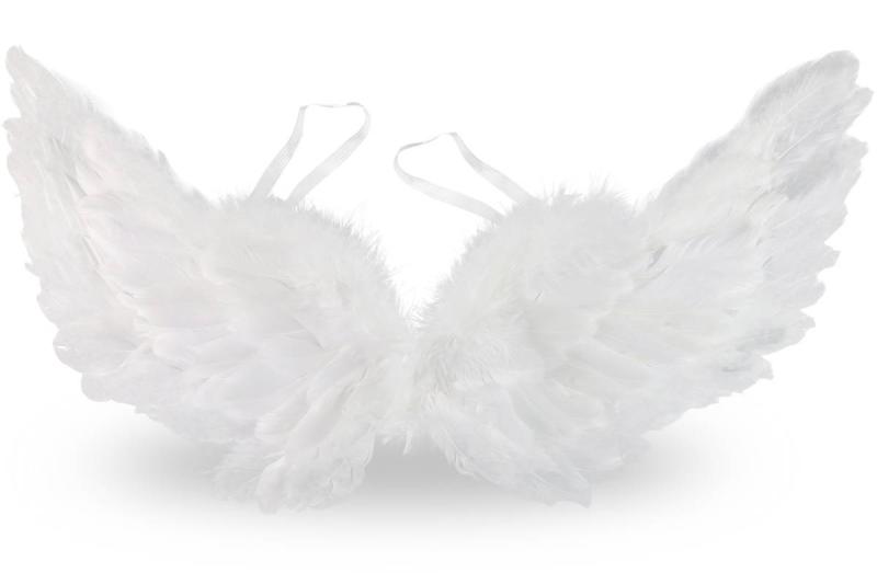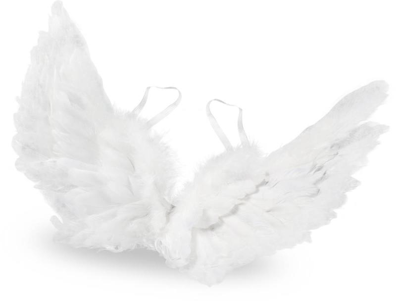 Bílá andělská křídla s peřím, o velikosti 50cm. Vhodné jako doplněk ke kostýmu na karneval nebo na Mikuláše.Lehká a elegantní andělská křídla potažená bílým peřím jsou perfektním doplňkem ke kostýmu anděla. Ideální na Mikuláše, vánoční besídky, focení nebo karnevaly. Pohodlné nošení díky elastickým popruhům.