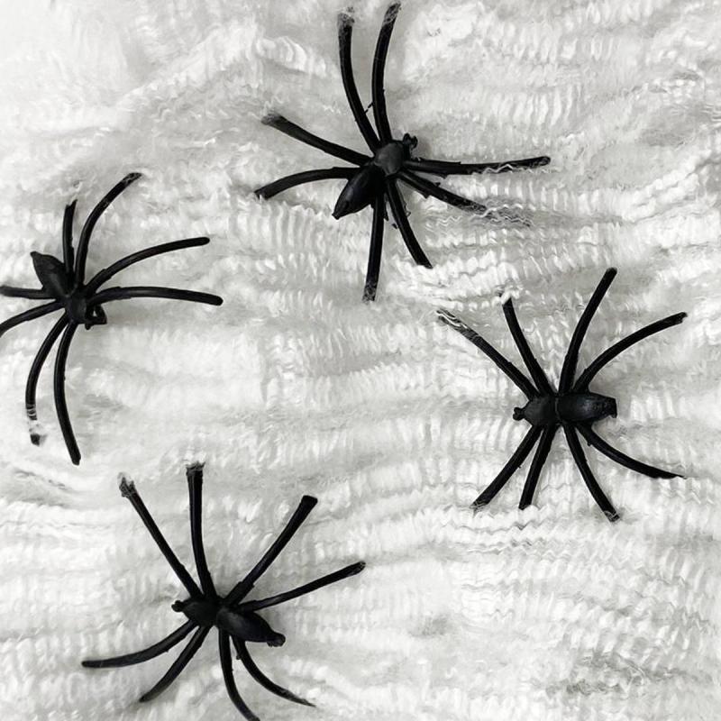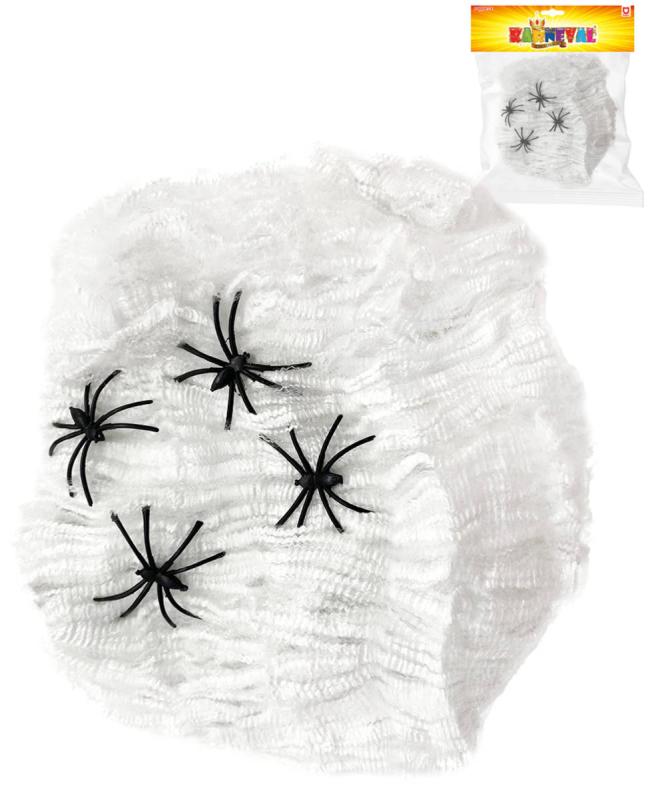 KARNEVAL Pavoučí síť bílá se 4 pavouky 3cm Halloween party dekorace