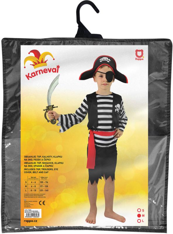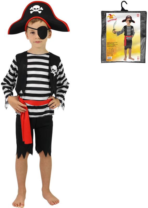 Obsah balení: horní díl, kalhoty, pásek, klapka na oko, stylová pirátská čepice