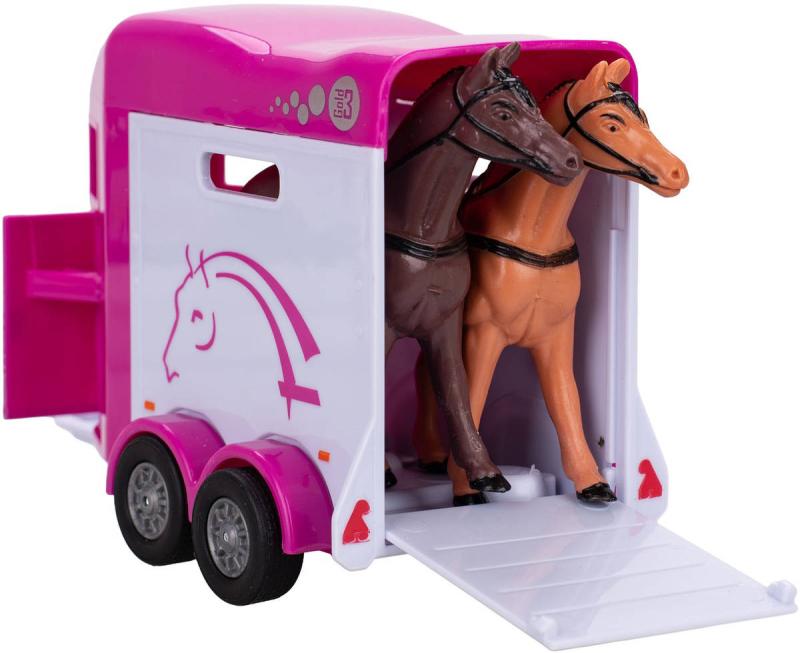 Kids globe Horses auto Land Rover set s přívěsem a koňmi růžový PB kov