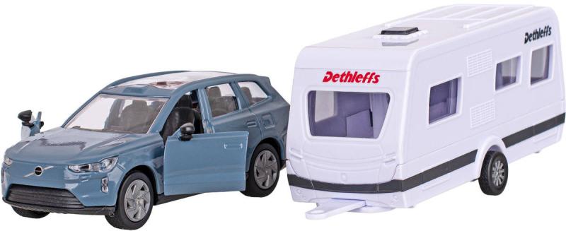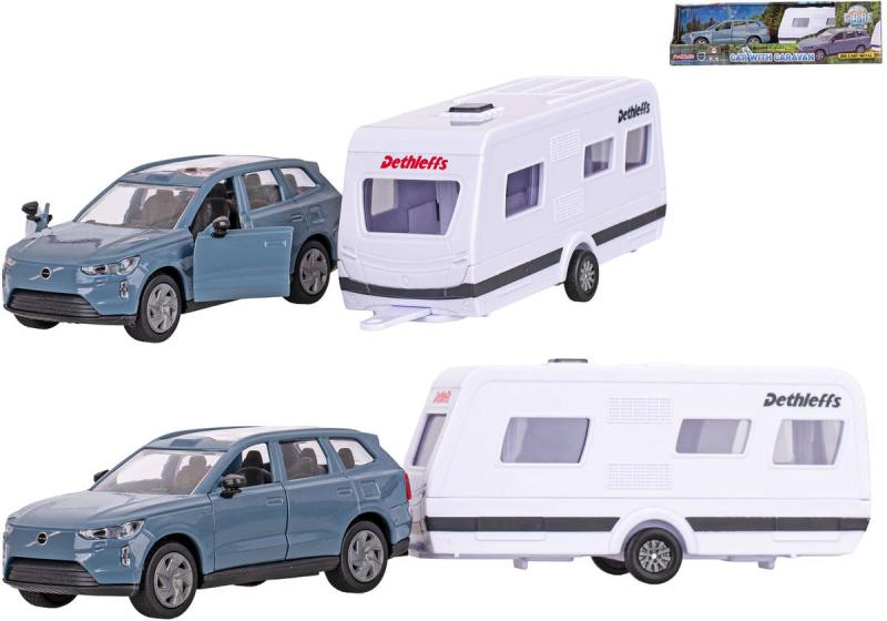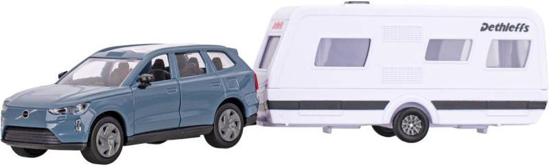 KIDS GLOBETraffic - Auto Volvo EX90 + kempingový přívěs - detailní věrný kovový model o velikosti 30cm, z kovu a plastu. Otevírací dveře, zpětný chod. Vůz vyroben tlakovým litím z kovové slitiny v kombinaci s plastovými díly.