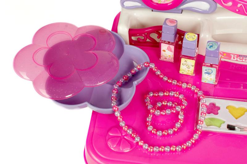 - zrcadlo, stolek, židlička, osvětlení, taburetku, funkční fén, hřeben, rtěnky, šperkovnici, lak na nehty, tvářenky, náhrdelník, náramky, gumičky do vlasů...