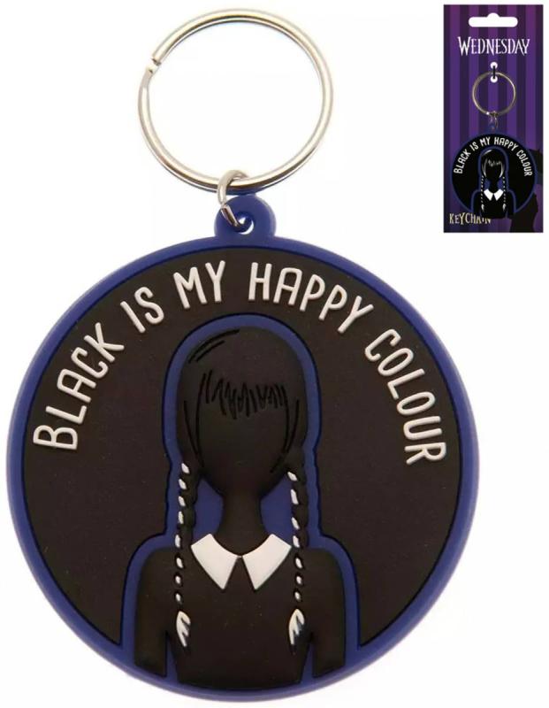Gumová dětská klíčenka s licenčním motivem "Wednesday" a kovovým očkem na zavěšení. Přívěšek na klíče pro děti.Přívěsek na klíče z měkkého a odolného 5mm silného PVC s kovovým kroužkem. Ideální pro připevnění na klíče, tašky, opasky a další předměty. Jasné, barevné a velmi detailně propracované. Oficiální licencovaný výrobek.