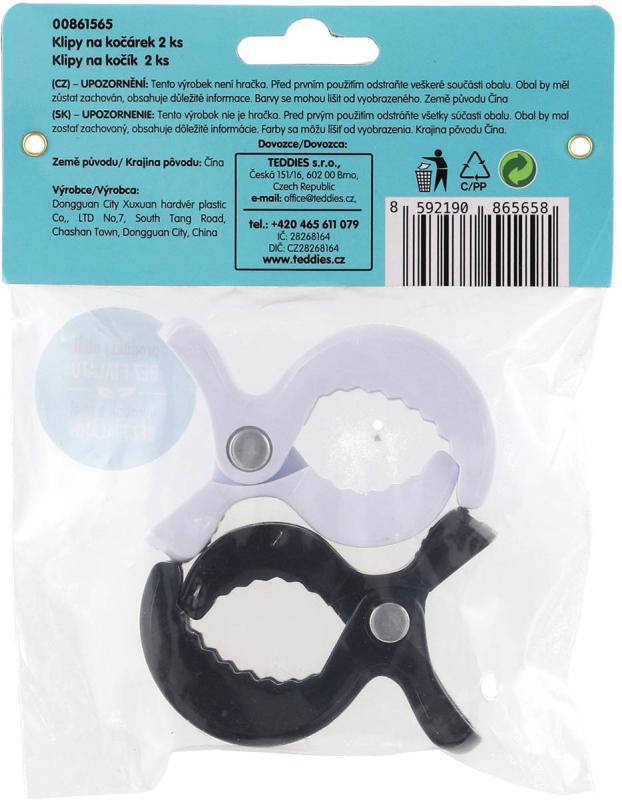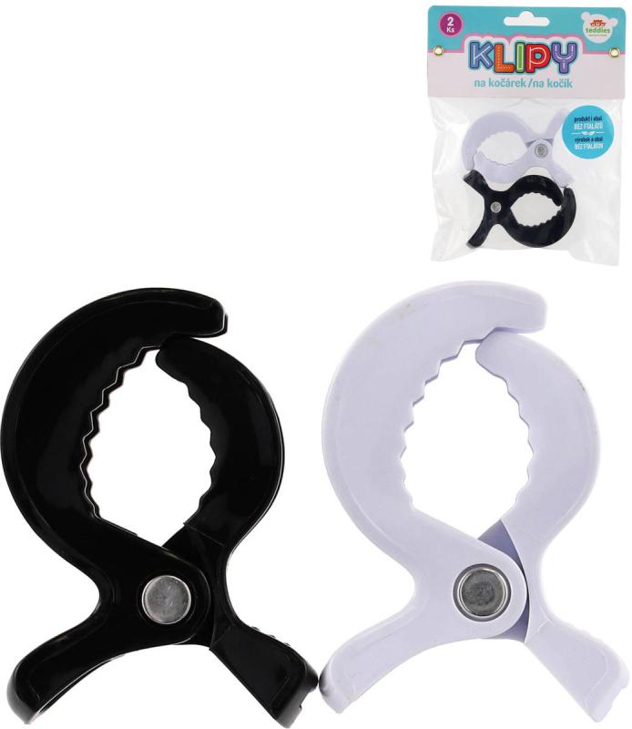 Klipy na kočárek černý + bílý set 2ks plast v sáčku