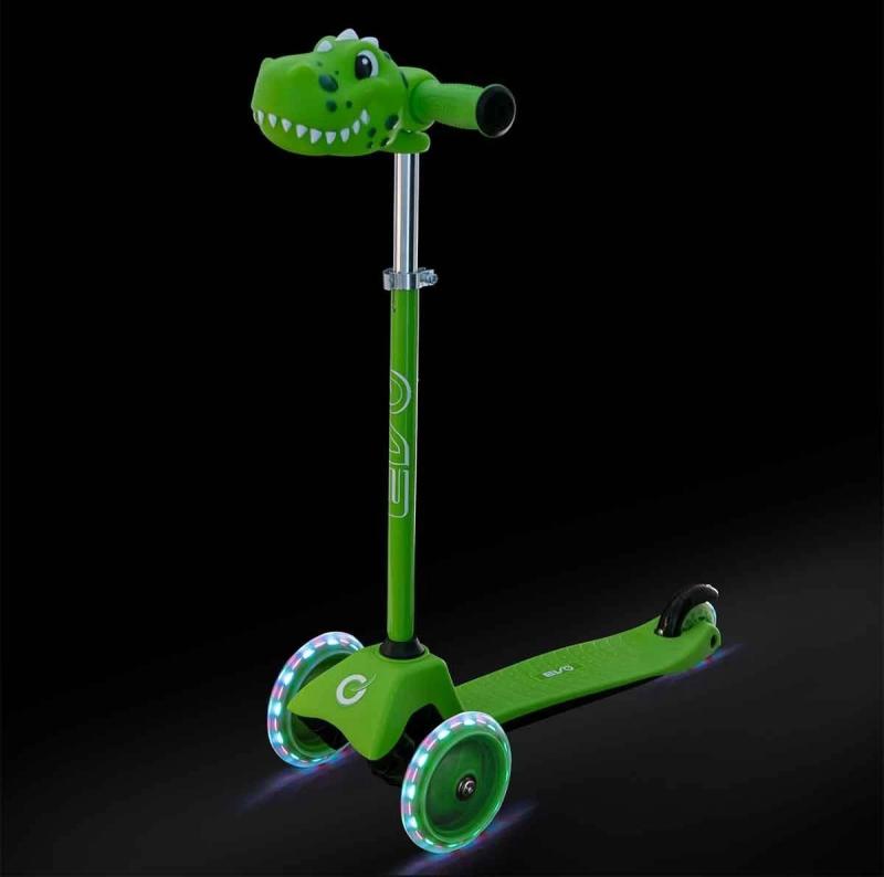 Koloběžka baby dětská Dinosaurus LED kolečka na baterie Světlo