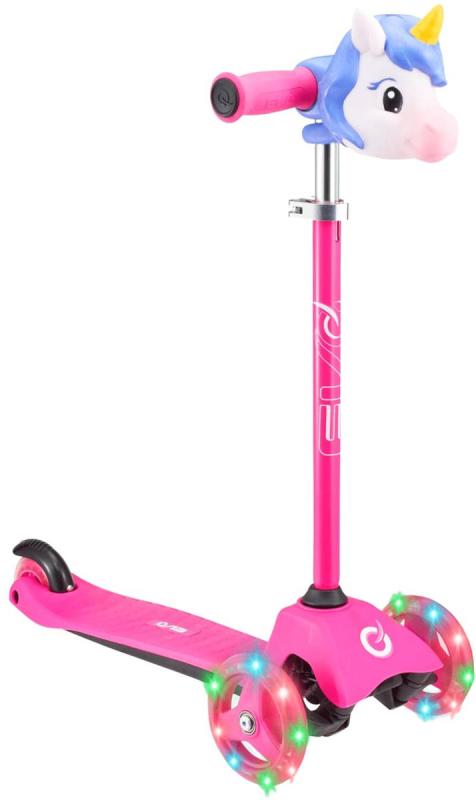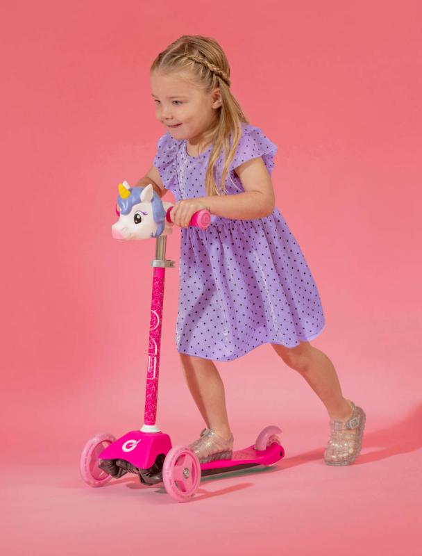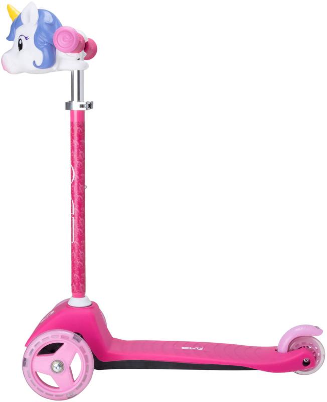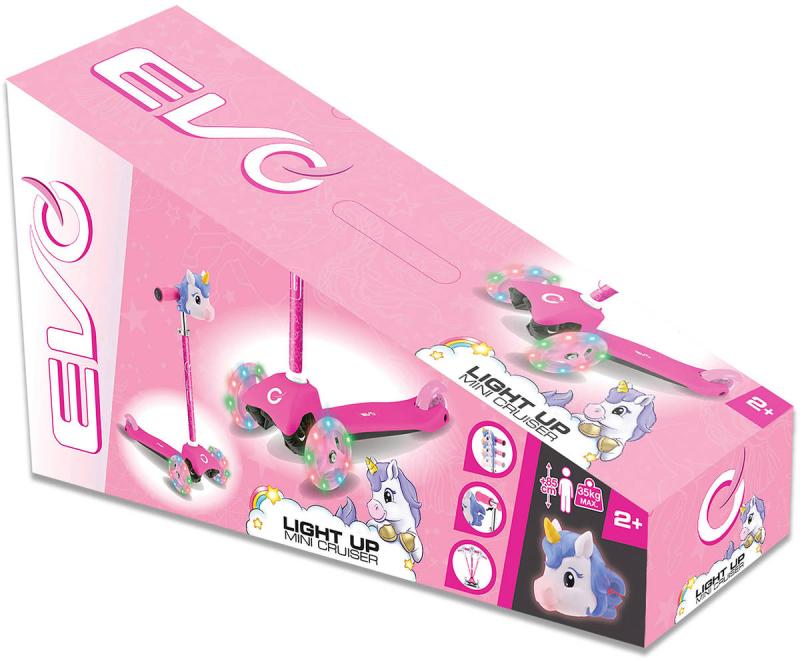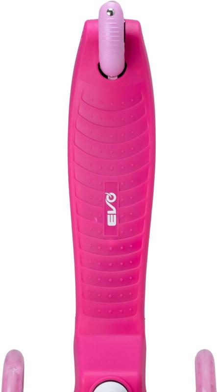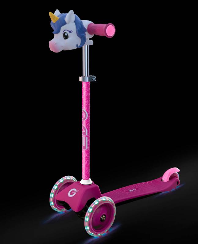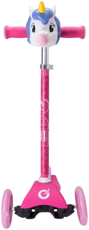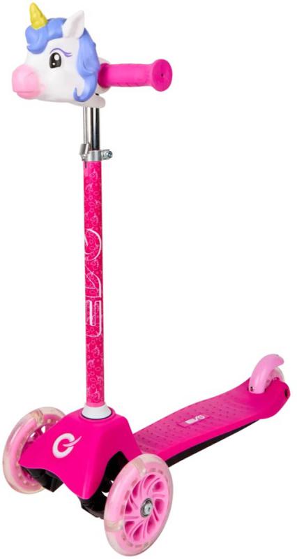Naučte se jezdit na koloběžce s EVO Mini Scooter! Vyjeďte na této trendy tříkolové koloběžce, která je ideální pro hraní venku s kamarády. Tato dětská koloběžka je navržena tak, aby pomáhala dětem rozvíjet rovnováhu a koordinaci. Dvě svítící přední kolečka o průměru 120 mm poskytují stabilní a bezpečnou jízdu a zároveň zábavný a vzrušující zážitek! Tato stylová mini koloběžka má na přední části hlavu zvířátka, ložiska ABEC 5, snadno odnímatelnou řídicí tyč (T-bar) a zadní brzdu. Navíc má nastavitelnou výšku řídítek 62–72 cm, což je praktické, protože koloběžka poroste spolu s vaším dítětem.