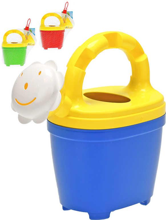Konvička baby veselá barevná na vodu 16cm s kropítkem 3 barvy plast