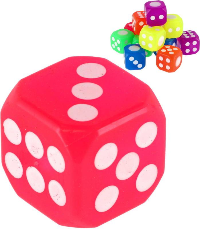 Tato silikonová hrací kostka v neonových barvách oživí každou deskovou hru. Při nárazu po vržení začne kostka svítit. Kostka se nemusí využívat použe při hraní her, ale může být také antistresovou hračkou.