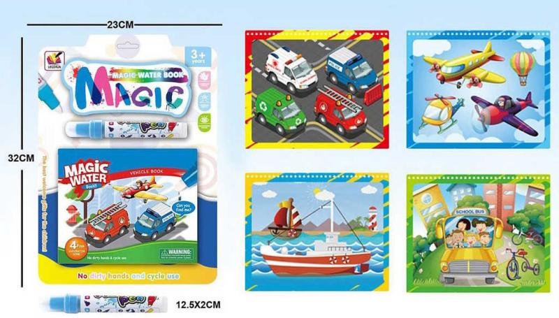 Kouzlení s vodou a barvou bez nepořádku! K tomu slouží toto kouzelné malování vodou s motivem dopravních prostředků. Balení obsahuje vodní fix. Ten stačí naplnit vodou a můžete začít
