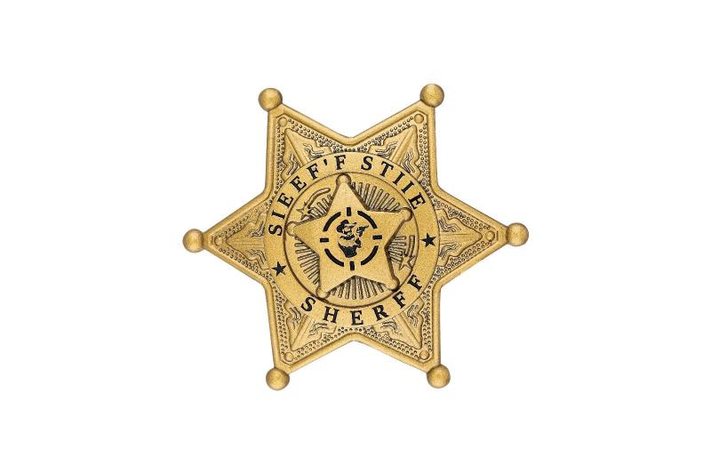 Zlatý kovový revolver na kapslíkové kotoučky, opasek na zbraň + klíčenka + odznak šerifa, barva zlatá. Krásné provedení, hmotnost 0,84 kg