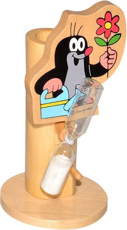 KRTEK (Krteček) Stojánek na kartáček s přesýpacími hodinami 4 druhy DŘEVO