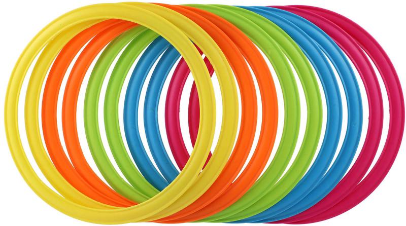 Sada plastových kroužků v různých barvách je ideální pomůckou do hodin tělesné výchovy, ke zlepšení fyzické zdatnosti, procvičení koordinace celého těla. Děti mohou skákat z jednoho kroužku do druhého nebo pouze do kroužků jedné konkrétní barvy, mohou si s kroužky házet, obíhat je a další. Skákací kroužky lze používat uvnitř i venku, jsou vhodné do školek, škol, školních družin i volnočasových zařízení.
