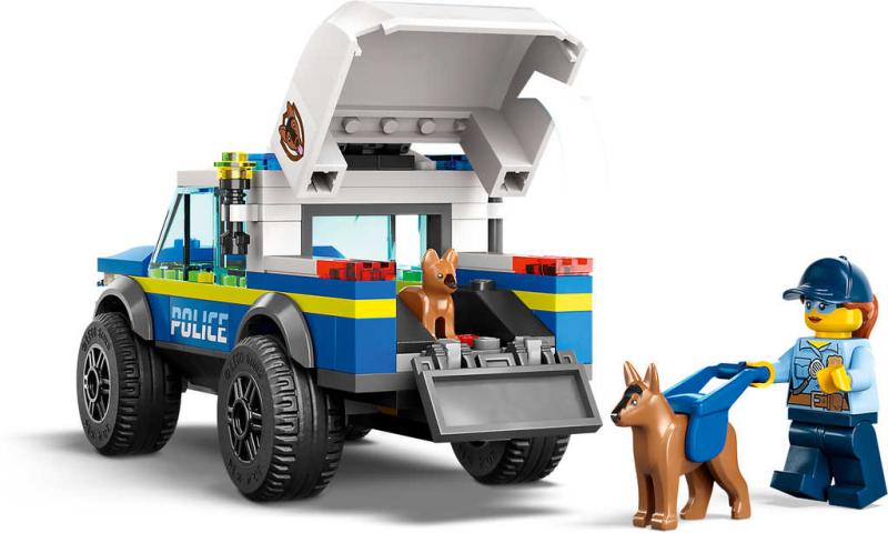 Děti a fanoušci psů od 5 let si stavebnici Mobilní cvičiště policejních psů naprosto zamilují. Terénní auto, přívěs a 3 cvičební překážky, včetně houpačky, tyče na přeskoky a