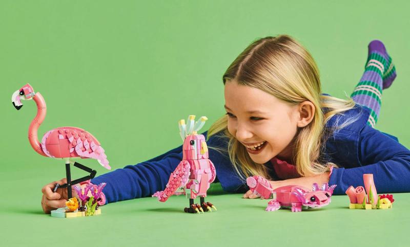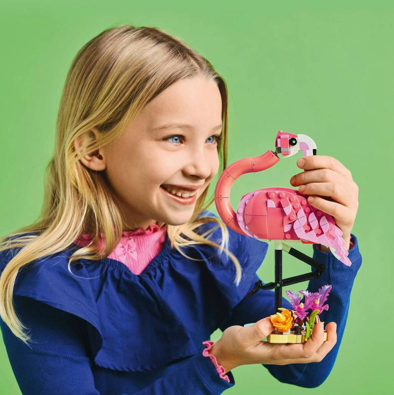 Potěšte holky a kluky od 8 let, kteří milují zvířata, s fantastickou stavebnicí Divoká zvířata: Růžový plameňák. Růžový plameňák má pohyblivou hlavu a sedí na malém stojanu pokrytém rostlinami a děti si s ním užijí hodiny nápaditého hraní nebo si ho hrdě vystaví v pokojíčku. S touto stavebnicí LEGO si děti užijí 3 různé možnosti stavění ze stejných kostek: postaví si růžového plameňáka s pohyblivou hlavou na stojanu pokrytém rostlinami, pohyblivého růžového kakadua, který může otáčet hlavou o 360 stupňů, nebo rozkošného pohyblivého růžového axolotla s podvodními rostlinami. Všechny 3 roztomilé modely zvířátek LEGO představují zábavné dárky pro děti.