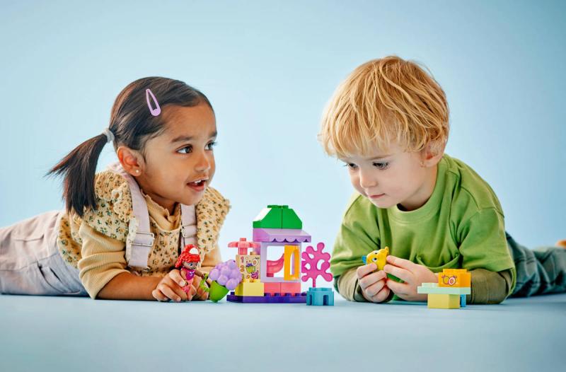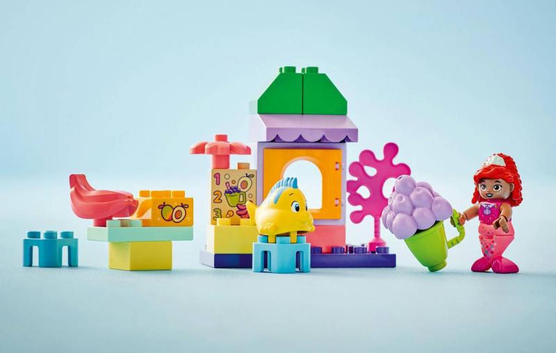 Se stavebnicí Ariel a Šupinka – stánek s kávou se fanoušci Malé mořské víly mohou těšit na zábavné dobrodružství pod mořskou hladinou. Děti od 2 let v ní objeví své oblíbené postavy ze seriálu Ariel od Disney Junior. Součástí této stavebnice LEGO DUPLO je stolek, židle a dílky v podobě ovoce. Sestavitelnému modelu stánku s kávou nechybí otevírací výdejní okénko s pantem, díky kterému si malí stavitelé procvičí jemné motorické schopnosti. Stavebnice podněcuje představivost a tvořivost a dospělí i malé děti si s ní užijí společné chvilky plné učení. Malí stavitelé sledují a napodobují 2 figurky LEGO DUPLO, Ariel a Šupinku, a vydávají se s nimi na dobrodružství. Děti se učí rozpoznávat pocity a popisují, jak seasi postavičky během hraní cítí. Tato vzdělávací stavebnice také pomáhá rozvíjet logické myšlení, když děti ze snadno uchopitelných kostek staví scény z televizního seriálu.