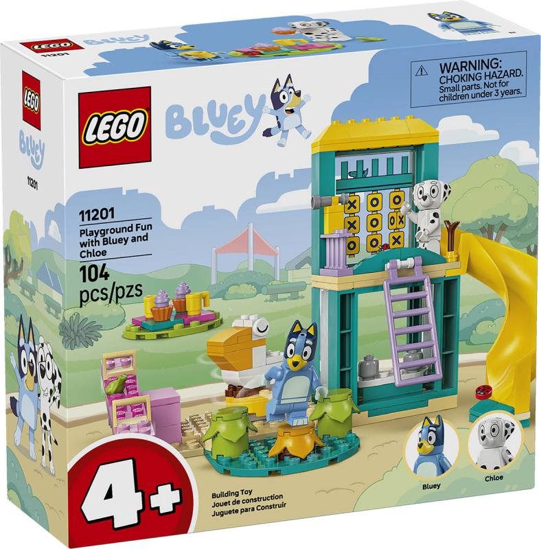 LEGO 11201 - Bluey, Chloe a zábava na hřišti z produktové řady LEGO DISNEY - Kvalitní dětská plastová stavebnice v krabici.Stavebnice Bluey, Chloe a zábava na hřišti pro malé fanoušky televizního seriálu Bluey je navržena tak, aby přinesla dětem od 4 let nekonečné možnosti kreativního hraní, které jim pomáhají rozvíjet sebevědomí a schopnost řešit problémy. Tato univerzální stavebnice pro malé děti obsahuje minifigurky oblíbených postaviček pejsků Bluey a Chloe na pestrobarevném hřišti, kde najdete houpačku, skluzavku, prolézačku a otáčejícího se pelikána. Součástí jsou také 3 rostliny, mezi kterými můžou postavičky skákat, věž s dalekohledem a místo na piknik s nápoji a cupcaky. V balení najdete samostatné sáčky (v každém z nich je jeden sestavitelný model), velkou začátečnickou kostku a jednoduchý intuitivní návod na stavění, díky kterému se malí stavitelé rychle pustí do zábavného hraní. Stavebnice LEGO pro děti od 4 let představují skvělý způsob, jak dospělí můžou sdílet zábavu při stavění se svými potomky.