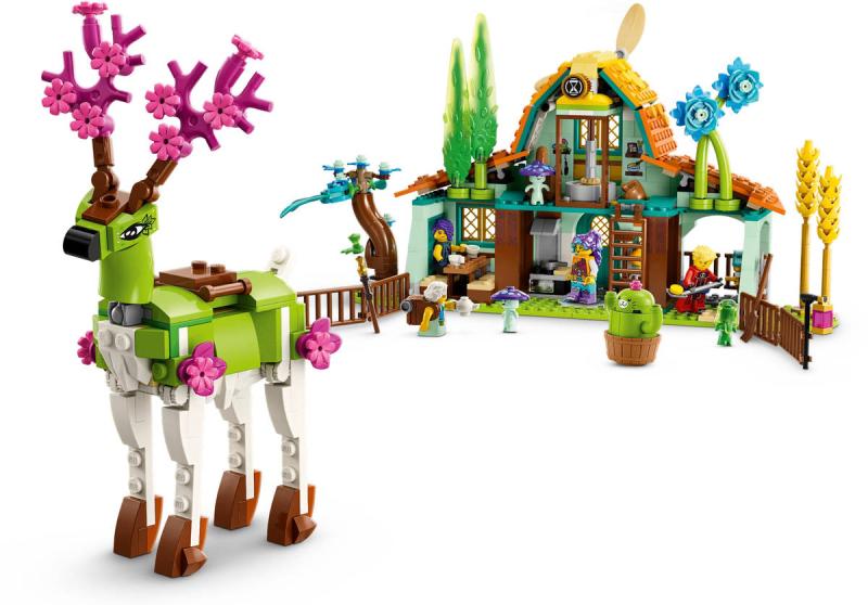 LEGO 71459: Stáj snových stvoření z produktové řady LEGO DREAMZZZ - Dětské plastové kostky v krabici.Stavebnice Stáj snových stvoření je inspirována televizním seriálem a zavádí děti od 8 let do kouzelného světa plného přírodních detailů a nových kamarádů, kde se setkají s bájnými stvořeními a postarají se o kouzelné květiny. Je plná úžasných detailů, které podnítí dětskou představivost. Děti nadchne prozkoumávání funkčního větrného mlýnu, stodoly (s otevíracími okny a vraty) a seznamování se s bájnými novými kamarády, jako jsou 2 stvoření ze Světa snů. 1 stavebnice,2 varianty ke stavění Stavebnice umožňuje 2 varianty ke stavění. Děti mají na výběr mezi ozdobením jelena jako létajícího pegase nebo nádherného ochránce lesa. Užijí si tak dvojnásobnou dobu hraní a rozvíjení kreativity. Fantastické detaily Jelen má pohyblivou hlavu a nohy a snadno se tak přizpůsobí hraní a místo paroží mu můžete nasadit květiny ze stáje. Součástí jsou propracované minifigurky Izzie, Zoey, Coopera a paní Castillové.