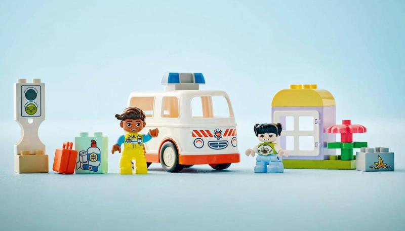Starostlivé děti si užijí hraní napínavých záchranářských scén se stavebnicí Sanitka a řidič. Součástí je pojízdná sanitka a 2 figurky LEGO DUPLO, záchranář a dívka, se kterými si děti užijí kreativní hru na postavy. Tato kreativní hračka LEGO DUPLO představuje skvělý dárek pro malé děti, které mají rády hry na rozvoj sociálních a emočních dovedností, a pomůže jim prohlubovat empatii. Součástí návodu na stavění je tištěné herní kolečko, se kterým rodiče a děti prozkoumají různé emoce postavičky holčičky. Děti s jeho pomocí vyjádří své pocity při tom, když se někdo necítí dobře, nebo jak se cítily, když poprvé viděly sanitku. Stavebnice také pomáhá rozvíjet logické myšlení při sestavování sledu událostí a jemné motorické dovednosti při otevírání střechy sanitky, přes kterou umístí figurku na sklápěcí lůžko. Tato vzdělávací hračka také pomáhá malým dětem rozvíjet sociální dovednosti při rozhodování, jak bude řidič sanitky zacházet s pacientkou.