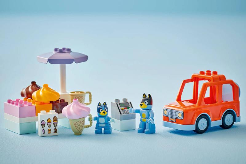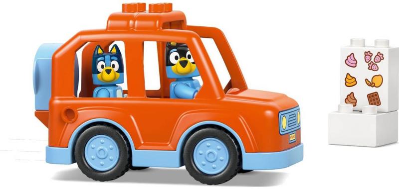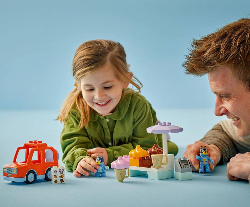 Pusťte se s malými dětmi do zábavného hraní se stavebnicí Bluey a výlet na zmrzlinu. Malí stavitelé si užijí nápadité hraní na dobrodružství s touto stavebnicí LEGO DUPLO s vozidly, se kterými si připomenou scény z televizního seriálu Bluey. S touto hračkou pro batolata si celá rodina užije hodiny společné zábavy. Děti nastartují autíčko, do kterého se vejde figurka tatínka i figurka Bluey, a společně se vydají na zmrzlinu. Tato kreativní hračka umožňuje malým dětem užít si zábavné výlety na různá místa a vychutnat si vynikající kopečky zmrzliny. Batolata procvičí svou dovednost poznávání čísel tím, že si vyberou, kolik kopečků zmrzliny chtějí, a naskládají na sebe správný počet kostek. Začnou také třídit barvy při nabírání příchutí a procvičí si jemnou motoriku při umisťování zmrzliny na kornouty. Stavebnice LEGO DUPLO Bluey umožňují malým dětem a jejich rodinám přehrávat si každodenní činnosti a přemýšlet, jak se při těchto činnostech cítí. Stavebnice obsahuje 22 dílků.