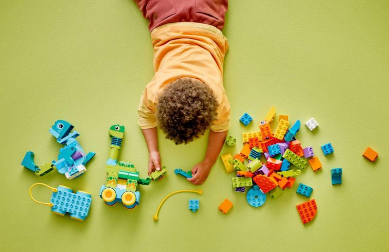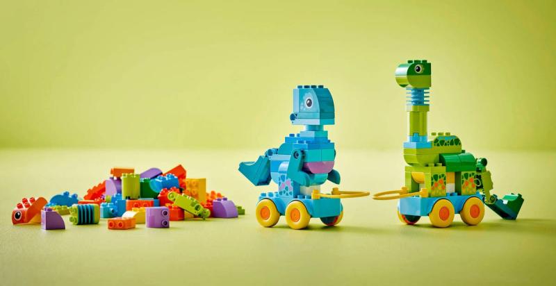 Dopřejte malým stavitelům pořádnou porci zábavy se stavebnicí 3 v 1: Dinosauři na kolečkách. Tato dinosauří stavebnice je plná tvořivých herních možností a součástí je řada barevných kostek, ze kterých lze vytvořit 3 páry kreativních modelů. 108 kostek a dílků v této stavebnici LEGO DUPLO se zvířátky lze sestavit 3 různými způsoby: Diplodocus a T-rex, triceratops a stegosaurus nebo pteranodon a parasaurolophus. Děti si můžou vytvořit ještě zábavnější figurky přidáním pohyblivého krku a ocasu, křídel nebo tlamy, kterou lze otvírat a zavírat. Dinosaury lze umístit na podložku s kolečky, takže stavebnice potěší všechny malé milovníky vozidel LEGO DUPLO. Tato stavebnice LEGO DUPLO 3 v 1 nabízí spoustu příležitostí k hravému učení. Model se skládá z kostek, se kterými se snadno manipuluje. Stavebnice dětem pomůže rozvíjet trpělivost, soustředění a představivost při nekonečném stavění a přestavování kreativních zvířátek.