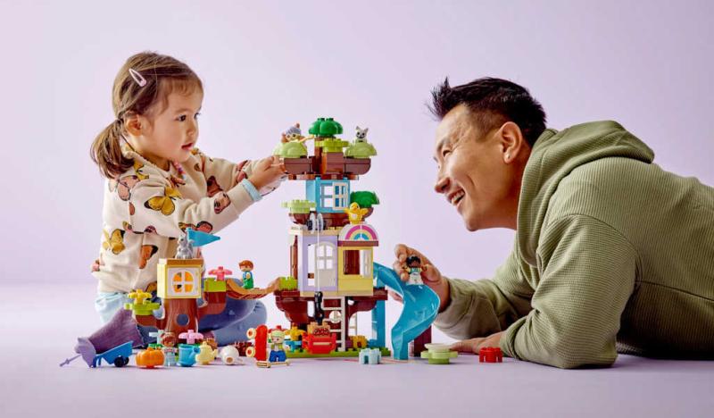 Děti nejprve postaví dechberoucí dobrodružný prostor na hraní se 3 patry, extra dlouhou skluzavkou a vratkým mostem. Pokud se začnou stahovat dešťové mraky, model lze přeskládat na útulný dům na stromě. Třetí model se skládá ze 2 domů na stromě, z nichž každý má vlastní skluzavku, a zahrádky, kde děti mohou sbírat ovoce a nosit je domů pomocí roztomilé kladky.