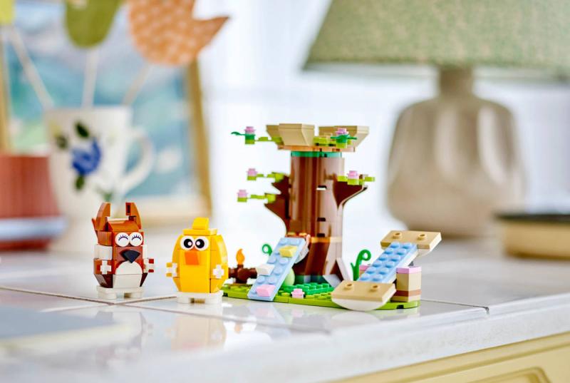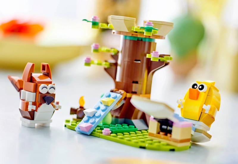 Oslavte Velikonoce s fantastickou stavebnicí LEGO se spoustou parádních detailů. S modelem Jarní hřiště pro zvířátka se děti od 8 let pustí do vyprávění zábavných příběhů s veverkou, ptáčkem, domečkem na stromě, ohništěm, houpačkou a 2 velikonočními vajíčky. Hravé děti vylezou s veverkou a ptáčkem po rampě, posadí je na vrchol domečku na stromě, zavedou je k ohništi a pohoupají je na houpačce. Nechybí 2 velikonoční vajíčka a prostor pod rampou a za domečkem na zábavnou hru na schovávanou.