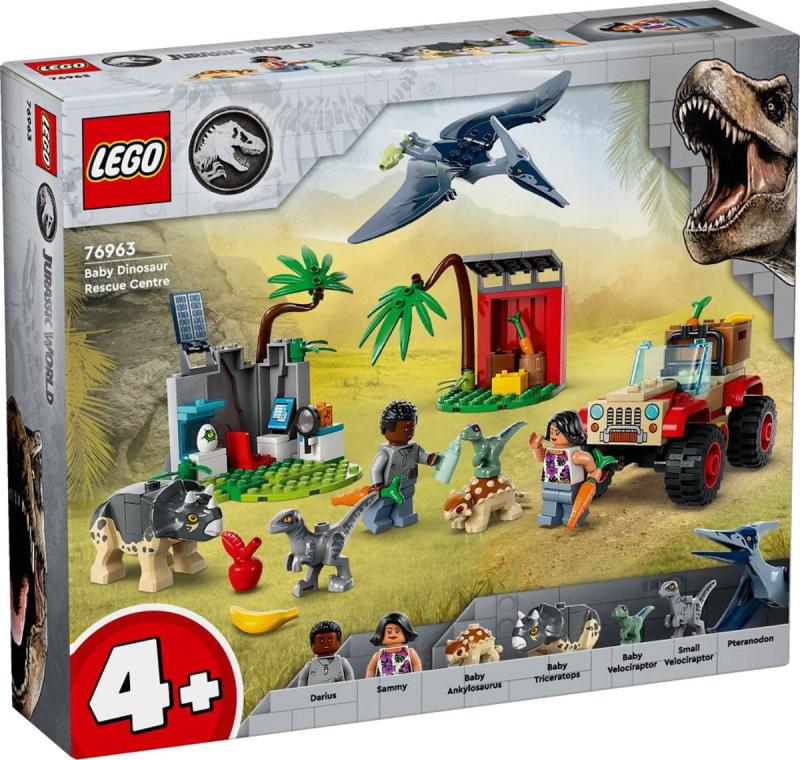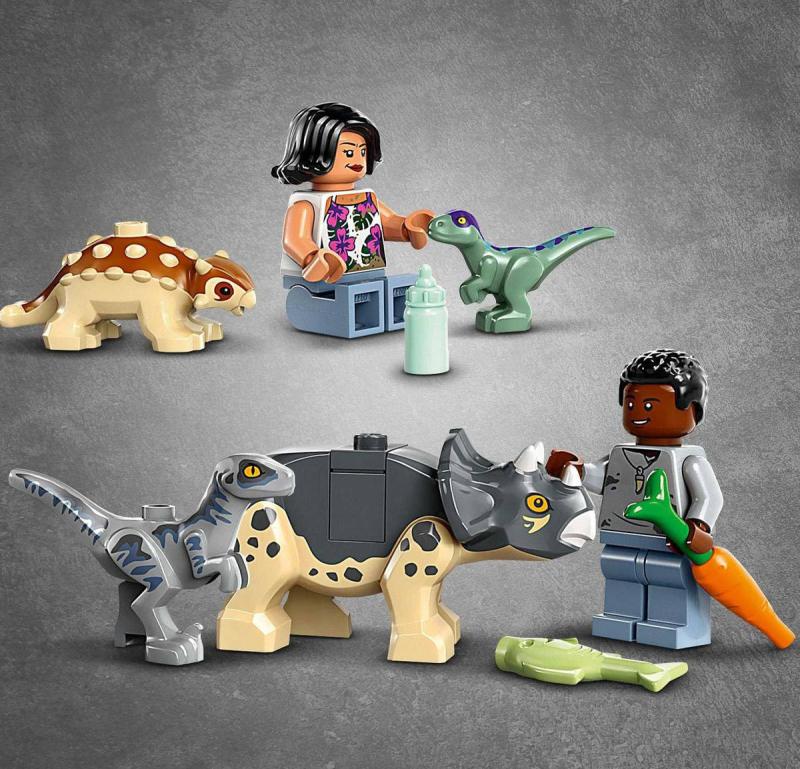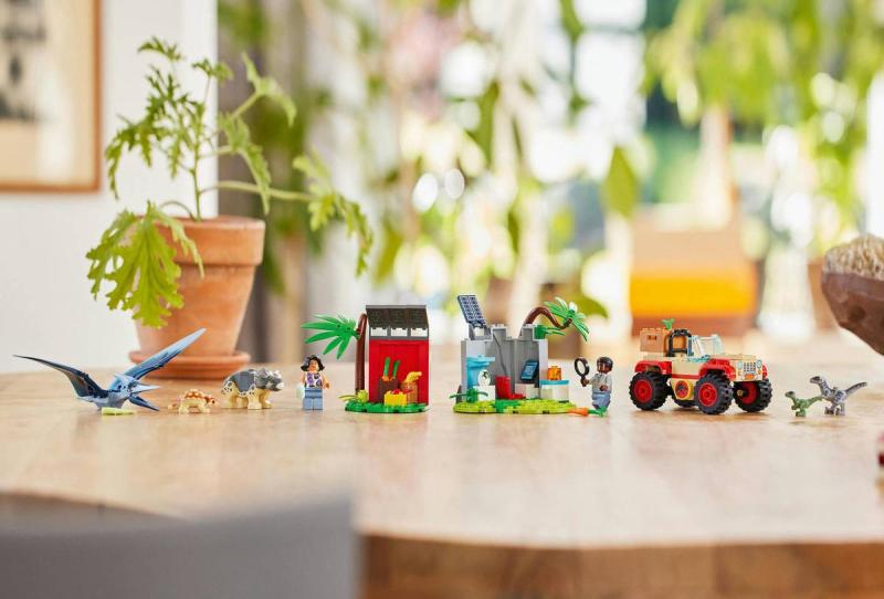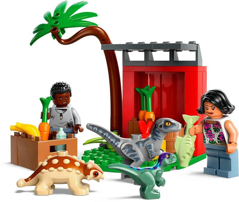 Fanoušci od 4 let si se stavebnicí Záchranářské středisko pro dinosauří mláďata užijí spoustu legrace a naučí se pečovat o malé dinosaury. Těšit se mohou také na terénní vozidlo a výzkumnou zónu s jeskyní se začátečnickými kostkami nebo na krmnou stanici. 2 minifigurky, figurky mláděte ankylosaura, triceratopse a velociraptora a figurky malého velociraptora a dospělého pteranodona zaručí, že se děti mohou ihned pustit do hraní.