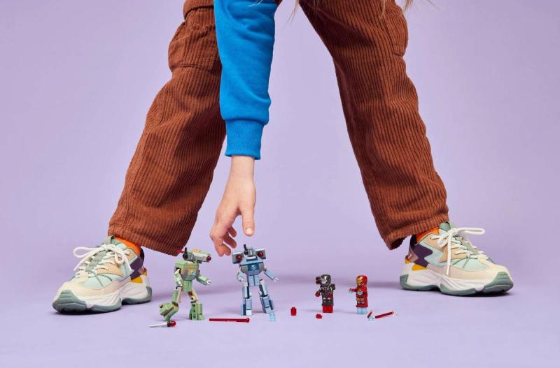 Iron Man a War Machine vs. Hammerovy Drony je sestavitelná superhrdinská stavebnice pro děti, které milují akční bitvy a sběratelské předměty LEGO Marvel. Tento malý dárek pro děti se pyšní zábavnými funkcemi a parádními zbraněmi a představuje ideální superhrdinský dárek pro kluky a holky od 7 let. Připomeňte si velkolepou bitevní scénu z filmu Iron Man 2 od studia Marvel s touto stavebnicí. Součástí jsou minifigurky Iron Mana a War Machine a 2 sestavitelné Hammerovy Drony. Drony jsou plně pohyblivé, takže je děti můžou napolohovat a užít si s nimi dynamické realistické hraní. Zelený Hammerův Dron má na rameni pružinový vystřelovač. Modrý Hammerův Dron má na obou ramenech vystřelovač aktivovaný stlačením. War Machine má červené blastery na rukou a na nohou a na rameni vystřelovač. Iron Man má modré blastery na rukou a nohou a může držet dílky v podobě laserového paprsku. Pro ještě větší digitální zábavu můžou stavitelé přibližovat a otáčet modely ve 3D a sledovat postup stavění pomocí intuitivní aplikace LEGO Builder. Stavebnice obsahuje 204 dílků.