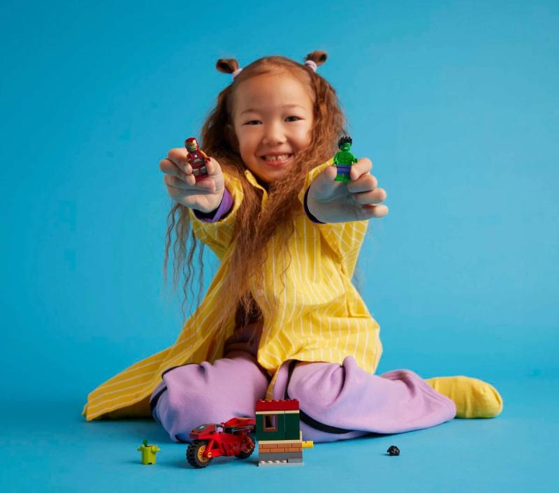 Potěšte všechny malé superhrdiny nebo fanoušky LEGO s touto sestavitelnou dobrodružnou stavebnicí Avengers. Stavebnice Iron Man s motorkou a Hulk je navržená tak, aby dětem od 4 let pomohla zvýšit sebedůvěru, soustředění a schopnost řešit problémy. Stavebnice LEGO Marvel obsahuje minifigurky Iron Mana a neuvěřitelného Hulka, k tomu navíc Iron Manovu sestavitelnou motorku a sestavitelný dům. Děti aktivují funkci, která budovu zhroutí (což se stává často, když je Hulk poblíž!)a pak ji znovu postaví, právě včas na Hulkův další výbuch. Součástí stavebnice je začátečnická kostka s rámem vozidla, která dětem pomůže se stavěním. Intuitivní návod najdete v barevném obrázkovém průvodci. Pro ještě větší digitální zábavu mohou stavitelé přibližovat a otáčet modely pomocí intuitivní aplikace LEGO Builder.