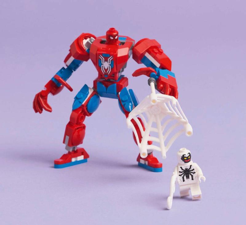 LEGO 76308 - Spider-Man v robotickém obleku vs. Anti-Venom z produktové řady LEGO MARVEL - Dětská plastová stavebnice v krabici.Stavebnice Spider-Man v robotickém obleku vs. Anti-Venom je ideální superhrdinská sada LEGO pro děti, které milují robotické obleky, minifigurky a akční filmy od studia Marvel. S touto prémiovou stavebnicí LEGO Marvel s pohyblivou sestavitelnou figurkou Spider-Mana si malí superhrdinové od 6 let užijí nekonečná nápaditá dobrodružství. Tato stavebnice od LEGO Marvel obsahuje 2 minifigurky: Spider-Mana a Anti-Venoma s chapadlovitýma rukama. Sestavitelný robotický oblek má pohyblivé ruce, nohy a prsty. Děti otevřou trup robota a dostanou se do kokpitu, kam lze umístit minifigurku Spider-Mana. Stavebnice obsahuje velkou pružnou pavučinu, ve které lze uvěznit minifigurku Anti-Venoma a která se vejde do rukou minifigurky i robotického obleku. přibližovat a otáčet modely ve 3D a sledovat svůj pokrok pomocí zábavné a intuitivní aplikace LEGO Builder pro ještě větší porci digitální zábavy.