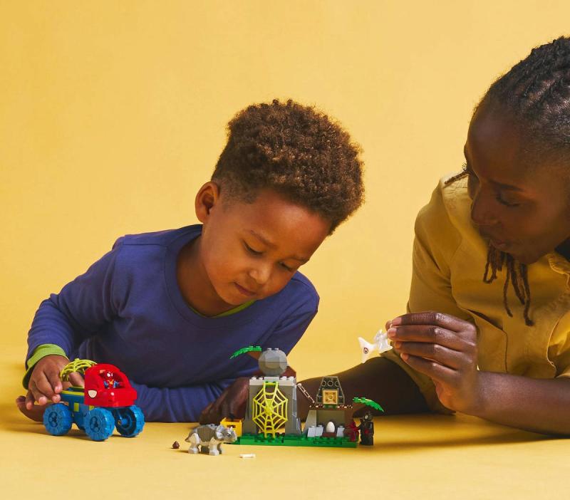 Potěšte fanoušky seriálu Spidey a jeho úžasní přátelé stavebnicí Spideyho tým a záchrana dinosaurů s truckem s dinosaury navrženou pro děti od 4 let. Sestavitelný truck obsahuje superhrdiny, dinosaury a zábavné doplňky. Kluci a holky se pustí do kreativního hraní, které jim dodá sebevědomí a prohloubí schopnost řešit problémy. Tato stavebnice LEGO obsahuje minifigurky Spideyho a Milese "Spin" Moralese a 2 sestavitelné figurky dinosaurů: Ghost-Spider jako pterodaktyla a Rhina jako triceratopse. Součástí je také Spideyho truck LEGO s velkou pavučinou připevněnou k zadní straně, funkce padajícího kamene ovládaná spouští, dinosauří vejce, které je třeba odhalit, a pavučina, kterou můžete spustit a s její pomocí chytit padoucha do pasti. Nechybí intuitivní pokyny v podobě barevného obrázkového průvodce a samostatné sáčky s kostkami a velkou začátečnickou kostkou, se kterými se děti hned pustí do stavění. Stavebnice LEGO pro děti od 4 let představují skvělý způsob, jak dospělí můžou sdílet zábavu při stavění se svými potomky.