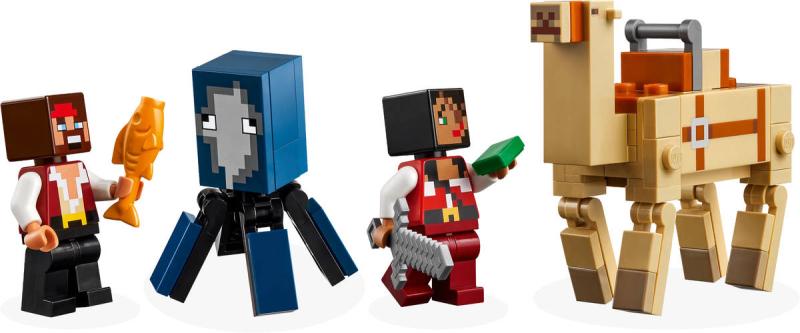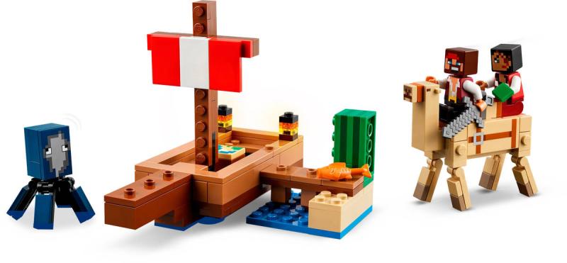 Plavba na pirátské lodi je dobrodružná stavebnice z řady LEGO Minecraft. Stavitelé si s ní mohou hrát samostatně nebo ji zkombinovat s dalšími stavebnicemi (prodávají se samostatně) pro ještě zábavnější zážitek ze hry. Tato všestranná stavebnice pirátské lodi potěší každého fanoušky Minecraftu od 8 let a děti, které mají rády lodě a stavění. Tato dobrodružná pirátská stavebnice LEGO Minecraft obsahuje sestavitelnou loď, oliheň, velblouda, 2 figurky pirátů a doplňky. Tato speciální stavebnice LEGO s piráty, lodí a vůbec prvním dospělým velbloudem v řadě LEGO Minecraft potěší každého fanouška Minecraftu. Na dvojité sedadlo velblouda se vejdou oba piráti, kteří spolu vyrazí na další dobrodružství. Doplňky včetně ryby, mapy, železného meče a kaktusu podněcují nápadité hraní. Stavebnici lze kombinovat s dalšími sadami LEGO Minecraft (prodávají se samostatně) pro ještě více herních možností.