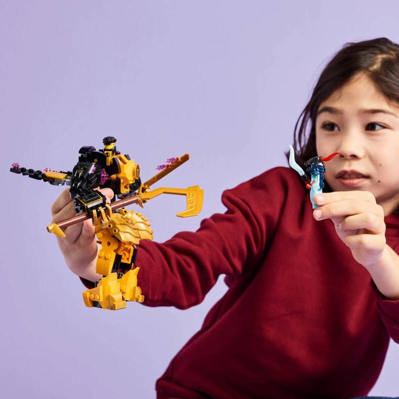 Milovníci nindžů od 7 let si se stavebnicí Arin a bojový robot Spinjitzu můžou přehrát scény ze 3. řady seriálu NINJAGO Dračí povstání. Tato stavebnice pro děti obsahuje robota NINJAGO s pohyblivými pažemi a nohama, které lze naklánět a otáčet do různých poloh, otočný trup, otevírací hruď, do které lze umístit minifigurku, a 2 velké meče. Děti si také můžou postavit robota podle vlastní představivosti výměnou částí těla z Arinova bojového robota Spinjitzu za díly z přizpůsobitelných robotů z řady NINJAGO 2024 (prodávají se samostatně): Coleův živelný zemský robot (71806), Sorin živelný technický robot (71807), Kaiův živelný ohnivý robot (71808) a Lloydův robot živelné síly (71817). Tato nindžovská stavebnice obsahuje 2 minifigurky: Arina s křišťálovou katanou a Přízračného dračího bojovníka s vlastním mečem, se kterým si děti můžou přehrávat napínavé bitvy dobra proti zlu. Součástí je také model Riyu jako mláděte.