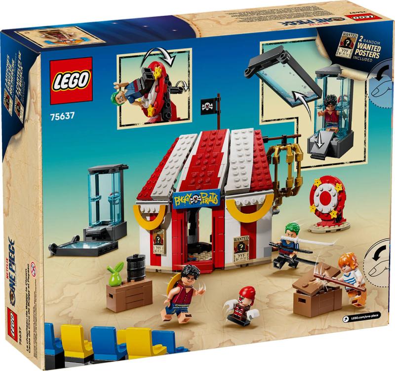 LEGO 75637 - Klaun Buggy a jeho cirkusový stan z produktové řady LEGO ONE PIECE - Kvalitní dětská plastová stavebnice v krabici.Děti se se stavebnicí Klaun Buggy a jeho cirkusový stan vydají na cirkusové dobrodružství jako ze seriálu ONE PIECE. Tato anime stavebnice LEGO pro kluky a holky od 8 let obsahuje spoustu doplňků, se kterými si děti přehrají oblíbené scény ze světa ONE PIECE a inspirují je k vymýšlení vlastních nápaditých dobrodružství. Součástí stavebnice jsou minifigurky Luffyho, Zora, Nami a pirátského kapitána Klauna Buggyho. Sestavitelný stan lze otočit a vytvořit tak větší hrací plochu s odnímatelnými částmi s židlemi a Buggyho trůnem. Součástí jsou také 3 cirkusové pasti, ze kterých musí hrdinové uniknout: nádrž na vodu, otáčející se terč a závěsná klec. Uvnitř stanu najdete krabice a sudy s dílky, ze kterých lze postavit menší verzi Buggyho. Nechybí spousta skvělých zbraní a doplňků, včetně 2 plakátů hledaných osob. Pro ještě větší porci digitální zábavy můžou stavitelé přibližovat a otáčet modely ve 3D a sledovat postup stavění pomocí intuitivní aplikace LEGO Builder. Stavebnice obsahuje 573 dílků.