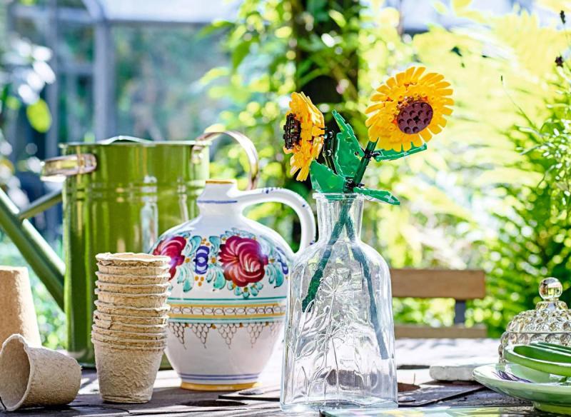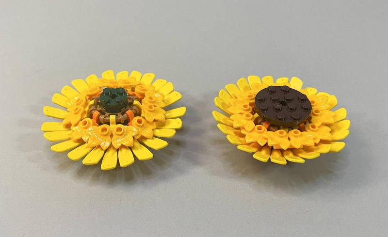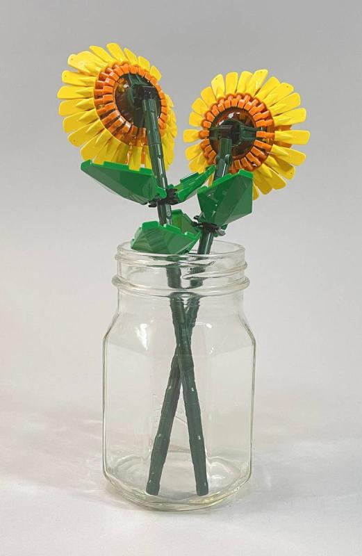 Slunečnice každý pokoj rozjasní svým radostným optimismem. A vy si nyní můžete tyto milované květiny postavit v podobě pestrého modelu. Umístěte poutavé slunečnice na výstavku nebo je zkombinujte s modely růží, tulipánů nebo s celou kyticí a vytvořte si okouzlující svazek (jednotlivé stavebnice se prodávají samostatně). Jedná se také o skvělý dárek ke Dni matek nebo jakékoli jiné příležitosti pro kamaráda nebo milovanou osobu. Rozjasněte interiér výstavním modelem slunečnic. V sadě na vás čekají 2 květy slunečnic s přizpůsobitelnými zelenými stonky a listy