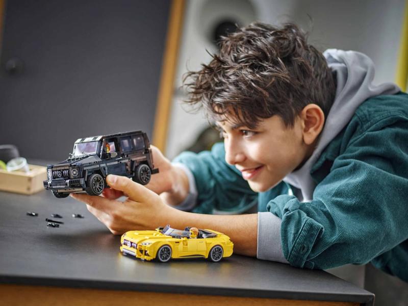 Děti od 10 let se mohou stát hrdými majiteli této úžasné dvojité sady sestavitelných vozidel Mercedes-AMG s modely Mercedes-AMG G 63 a Mercedes-AMG SL 63. Tato stavebnice LEGO se dvěma stylovými modely aut je ideální pro děti, fanoušky Mercedesu a vášnivé dospělé sběratele, kteří chtějí stavět a vystavovat modely a užívat si akční závody. Model černého vozu Mercedes-AMG G 63 třídy G a žlutého roadsteru Mercedes-AMG SL 63 se pyšní autentickými designovými prvky podle skutečných vozidel Mercedes-AMG, včetně předních masek, kapot a interiérových prvků. Součástí každého modelu vozidla Mercedes-AMG je také minifigurka řidiče, kterou děti posadí za volant a užijí si s nimi závody na trati.