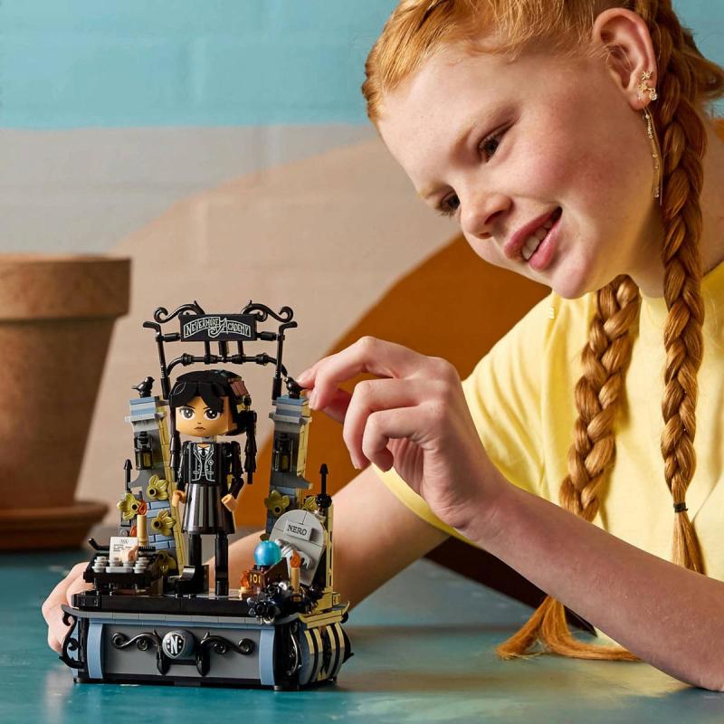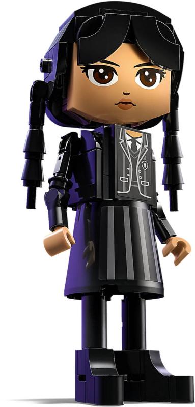 Děti od 10 let se se stavebnicí Figurka: Wednesday Addamsová mohou těšit na pořádnou dávku záhad a chaosu. Tato dárková stavebnice LEGO s Wednesday obsahuje sběratelský model s pohyblivou hlavou, rukama a nohama, a navíc 2 obličeje a 2 druhy oblečení, se kterými si malí stavitelé figurku přestaví podle svého gusta. Součástí sady je věrný parťák Věc, stojan s černými jiřinami a 2 skryté prostory, ve kterých uchováte poklady, jako jsou šaty z Havranbálu nebo její uniforma. Nechybí také brána akademie Nevermore a Wednesdayiny doplňky, včetně psacího stroje, Neronova hrobu, křišťálové koule a dalších prvků. Prohlédněte si i další stavebnice s motivem LEGO Wednesday Addamsové (prodávají se samostatně) pro ještě více herních možností. Model navíc představuje skvělý narozeninový dárek pro děti.