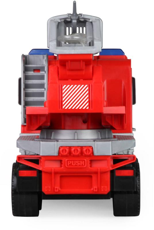 Funkční požární stříkačka s dostřikem až 3m, 250ml integrovaná nádobka na zásobu vody, možnost otáčení s žebříkem až 270°, výsuv žebříku do velikosti 60cm. 6mm tlusté kovové osky u kol, kvalitní plast s velmi pevnou stavbou.