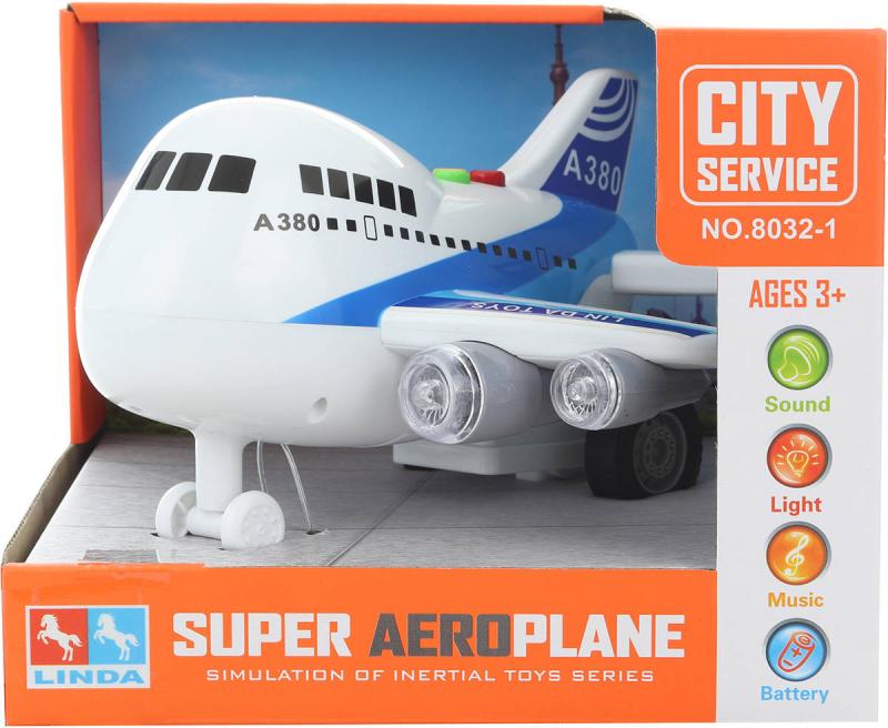 Bílé plastové letadlo A380, pro všechny malé letce a piloty. Hračka na baterie, se světlem a zvukem.Rozměry dětské hračky (d š): 22 x 21cm