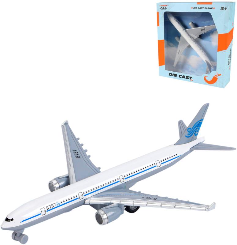 Bílošedé kovové dopravní letadlo s pohonem na zpětný chod, letoun o velikosti 19cm.Objevte kouzlo létání s tímto modelem dopravního letadla! Hračka o délce 19cm je vyrobena z kvalitního plastu v kombinaci s kovem a díky mechanismu na zpětný chod se po natažení a puštění sama rozjede vpřed. Letadlo které potěší každého malého fanouška letectví je ideální pro hru doma i na cestách.