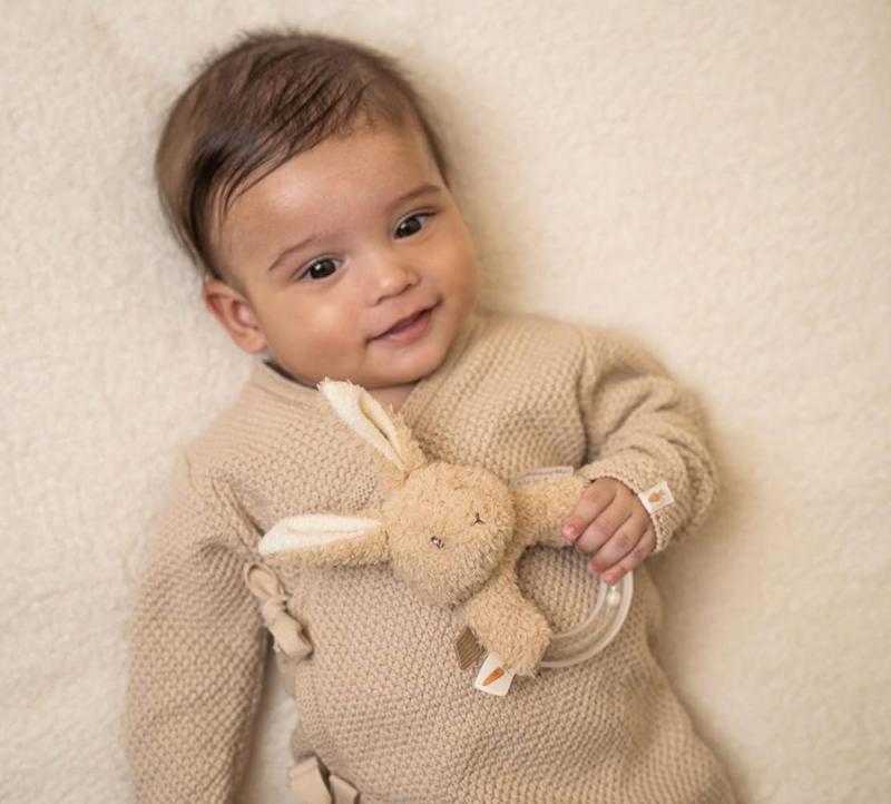 Originální chrastítko v podobě průhledného kroužku s chrasticími korálky a plyšovým králíčkem je ideální jako první hračka pro vaše miminko. Chrastítko má tvar pro snadné uchopení a různorodé textury pro zkoumání rukama i ústy. Hračka je součástí designové kolekce hraček Little Dutch Baby Bunny.